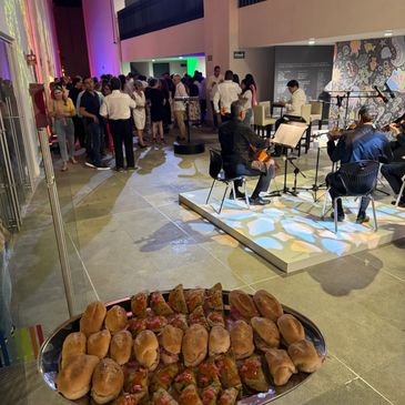 Bocadillos tradicionales o gourmet, vinos, aguas frescas, mobiliario y servicio de nuestro personal que estará siempre a tu disposicion.